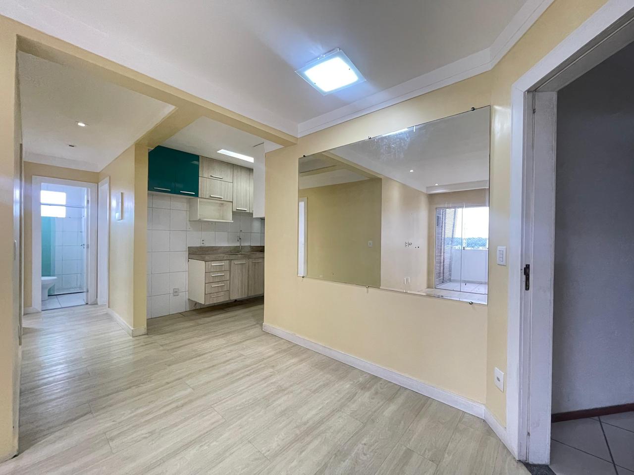 3 quartos sendo uma suíte com varanda e modulados, Sala ampla com varanda e área técnica, Cozinha, Banheiro social e 2 vagas de garagem cobertas.